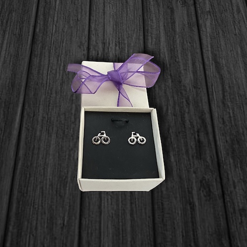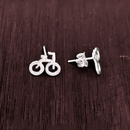Par de aretes en plata 925 de 1,3 cm aproximadamente, hecho a mano artesanalmente con el diseño de una bicicleta.