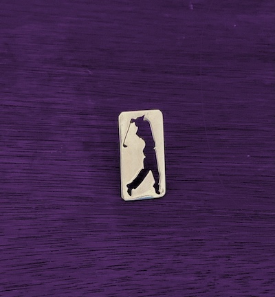 Prendedor (pin) en plata 925 de 2,5 cm aproximadamente, hecho a mano artesanalmente con el diseño rectangular de un hombre golfista.
