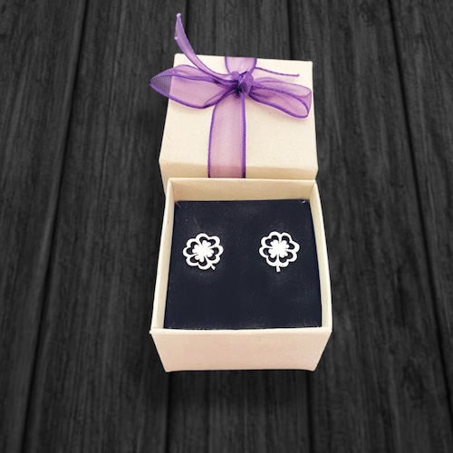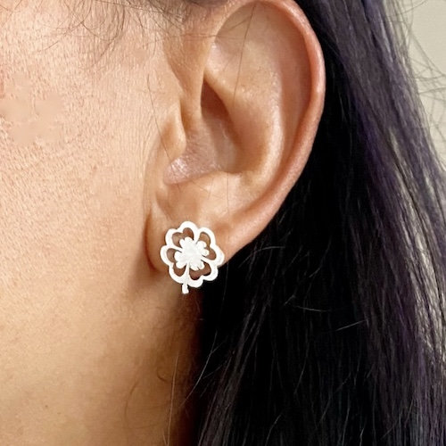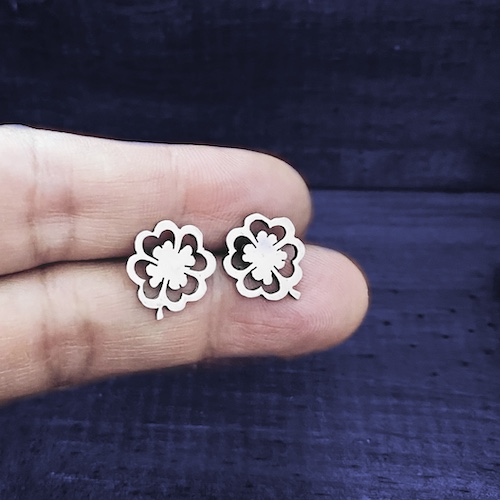Par de Aretes en plata 925 de 13 mm aproximadamente, hecho a mano artesanalmente con el diseño de un doble trébol de 4 hojas.
