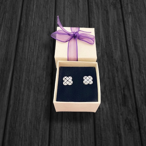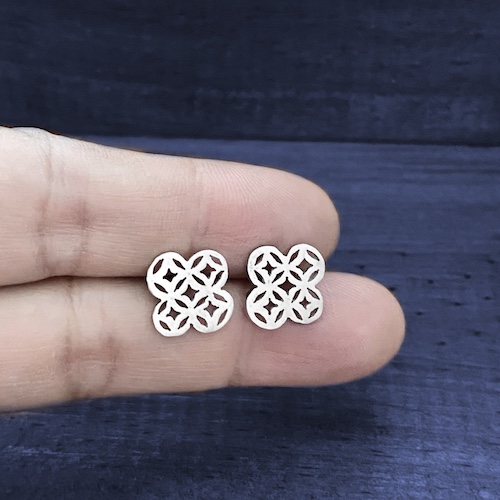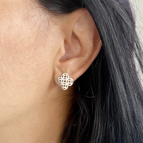 Par de Aretes en plata 925 de 13 mm aproximadamente, hecho a mano artesanalmente con un diseño de la flor de la vida.
