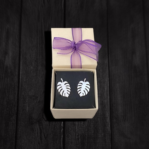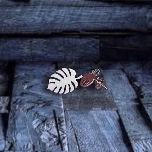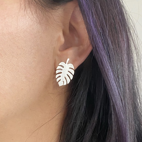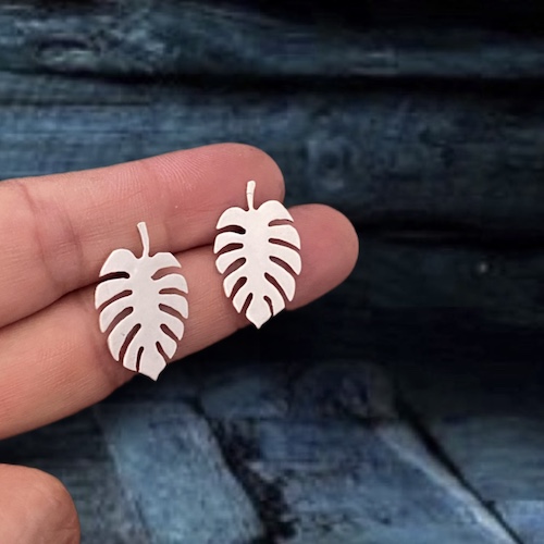 Par de Aretes en plata 925 de 25mm aproximadamente, hecho a mano artesanalmente con el diseño de una hoja de Monstera.